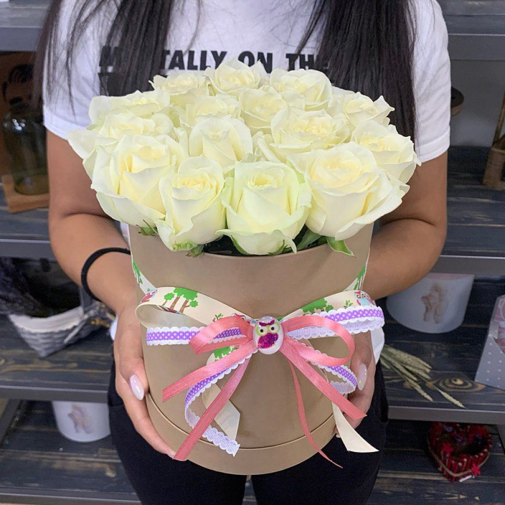 15 белых роз в коробке